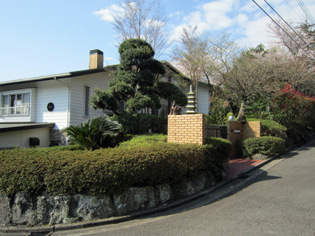 細い道に入ったら、交差点を順に、右折、左折して道なりに進みますと、右手に寂照院が見えます。